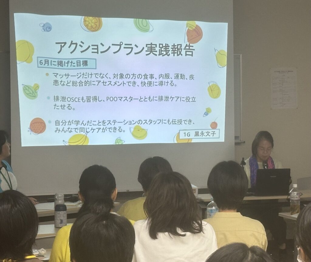 今後は、今回学んだ視点を日々の訪問看護に活かしながら、排便ケアに対しても「その人らしさ」を大切にした支援を行っていきたいと思います。