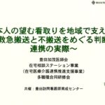 2025年2月25日 / 最終更新日 : 2025年2月25日 9ra3seisaku 勉強会 在宅看取り研修会を開催しました こんにちは、訪問看護ステーションひなたです。 2月23日、「看取り研修会」を開催しました。今回は、当ステーションで看取りをさせていただいた利用者さまのご家族の提案をきっかけに、私たちも企画に関わらせていただきました。研修 […]